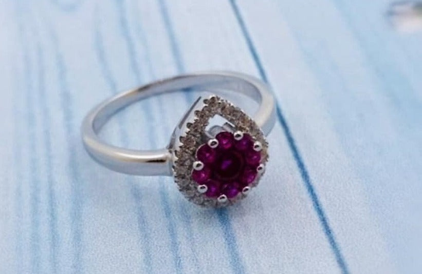 PANI663 ANILLO DE FLORES CON PIEDRAS FUCSIA, PLATA 925ANILLO DE PLATA DE MUJER