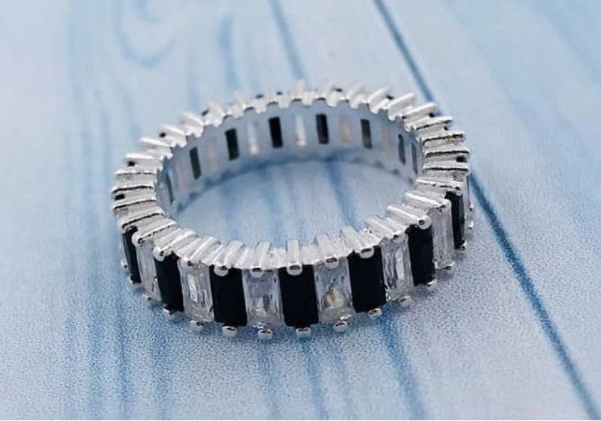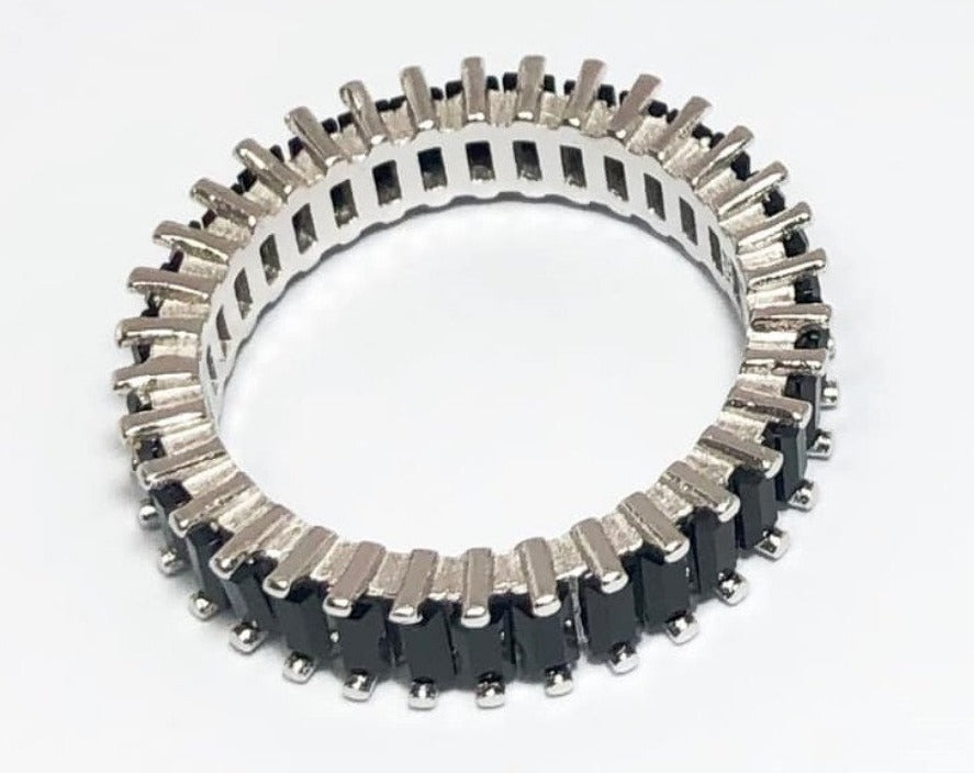 PANI624 ANILLO CIRCONES NEGROS, PLATA 925ANILLO DE PLATA DE MUJER