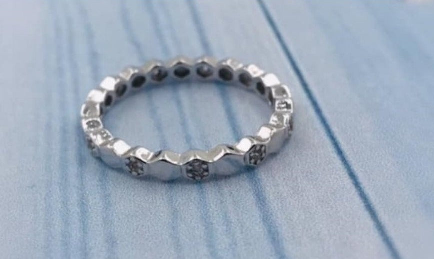 PANI564 ANILLO CON FORMA DE EXAGONOS, PLATA 925ANILLO DE PLATA DE MUJER