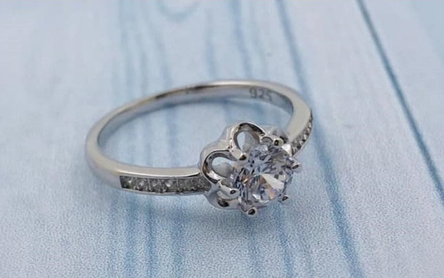 PANI653 ANILLO DE FLOR CON PIEDRAS TRANSPARENTES, PLATA 925ANILLO DE PLATA DE MUJER