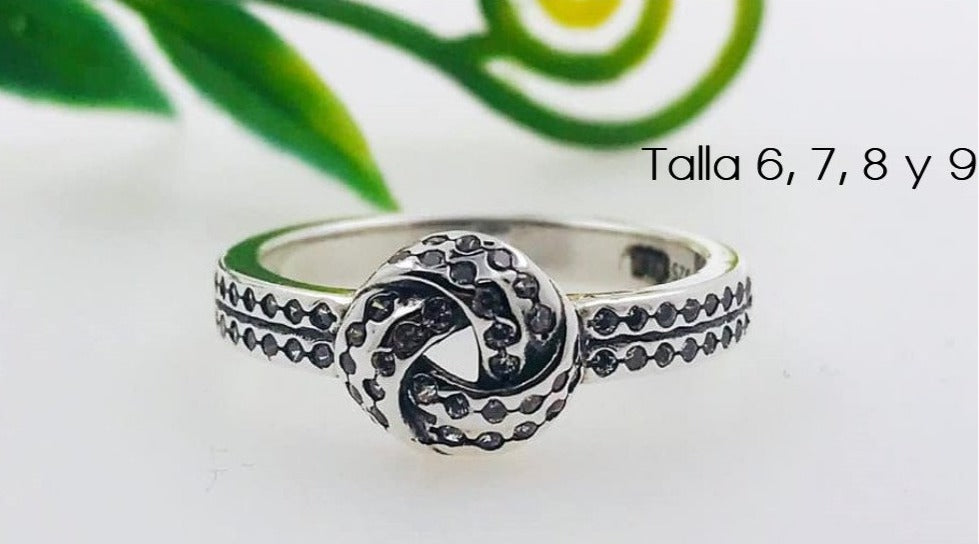PANI562 ANILLO CIRCONES NEGROS Y TRANSPARENTES, PLATA 925ANILLO DE PLATA DE MUJER