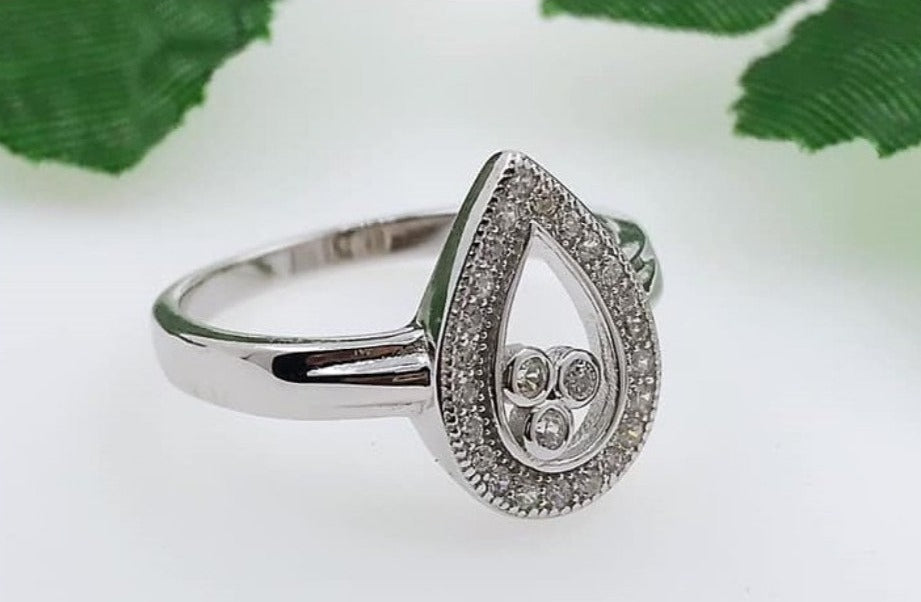 PANI394 ANILLO CON CIRCONES EN FORMA DE GOTA, PLATA 925ANILLO DE PLATA DE MUJER