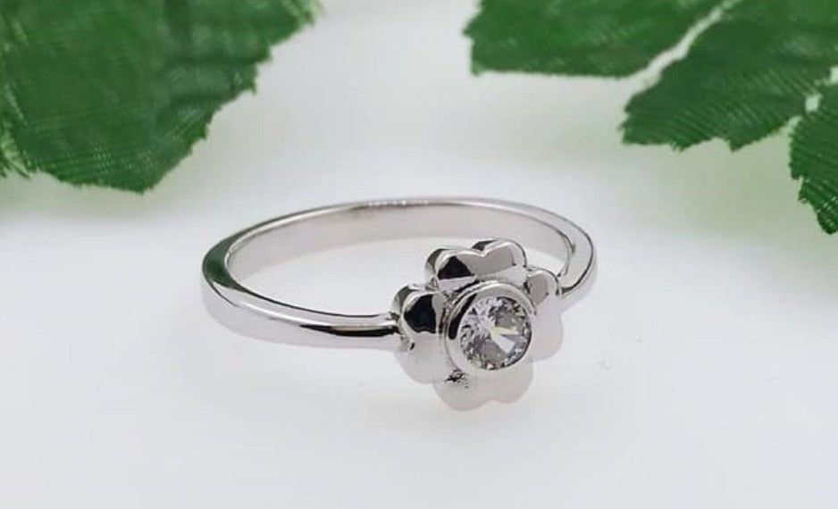 PANI457 ANILLO FLOR CON PIEDRA TRANSPARENTE EN MEDIO, PLATA 925ANILLO DE PLATA DE MUJER