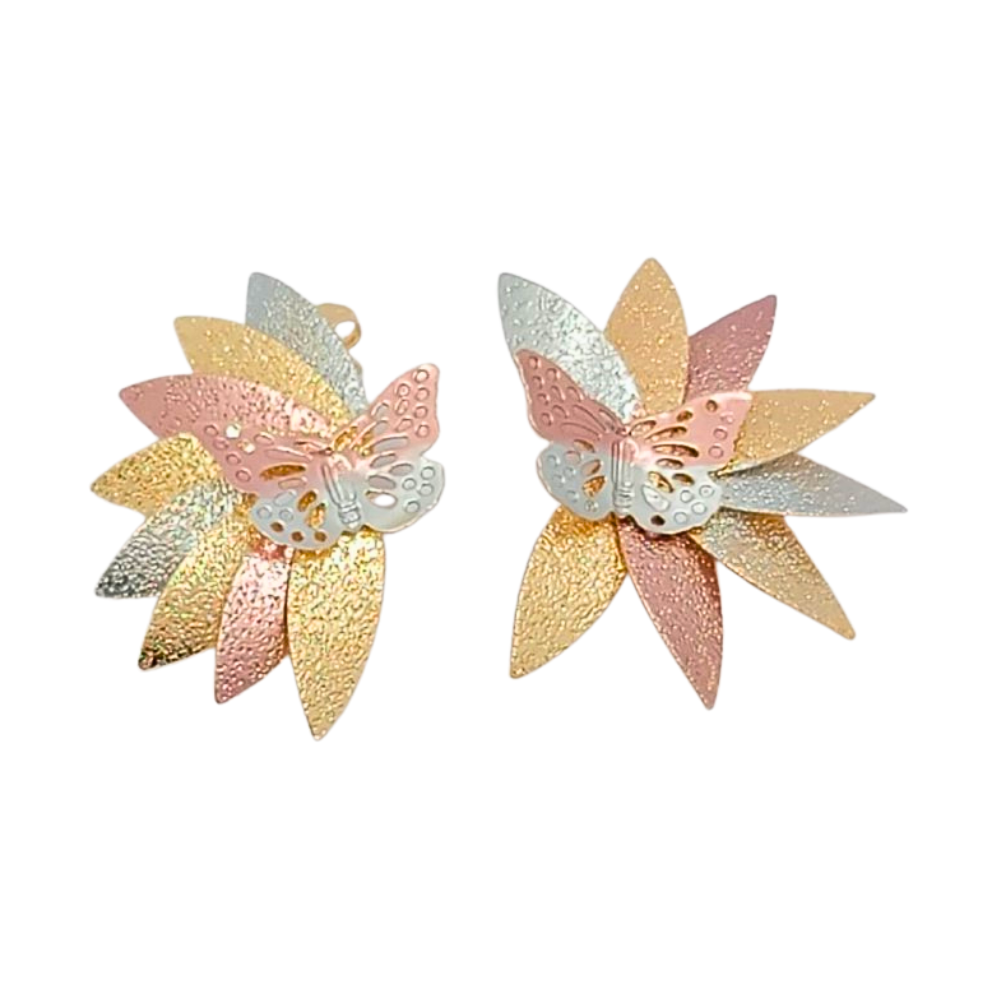 EARI4020 FORMA FLOR MARIPOSAARITOS DE ENCHAPE EN ORO