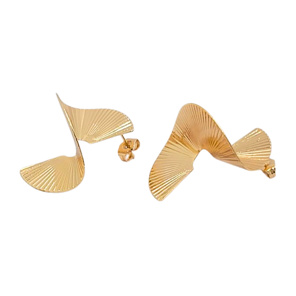EARI4007 FORMA HOJA MARIPOSAARITOS DE ENCHAPE EN ORO