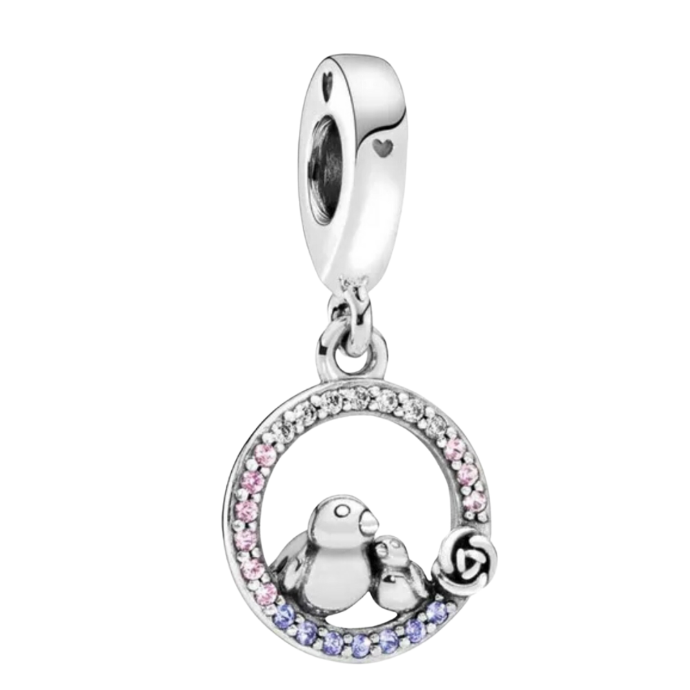 PCHARM675 COLGANTE CIRCULAR CON PAJARITOSPLATA CHARM