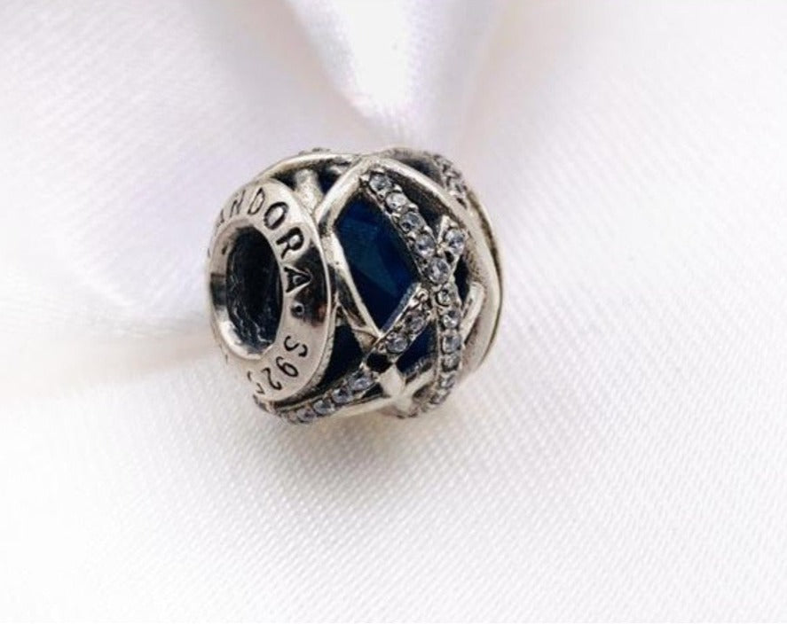 PCHARM0519 PIEDRA AZUL CON CIRCONES BLANCOS ENTRE LASADOSPLATA CHARM