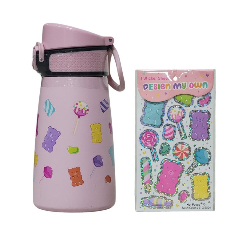 BOTES DE AGUA EN SET DE 3 PIEZAS DE LABUBU, 4 COLORESBOTE TERMICO