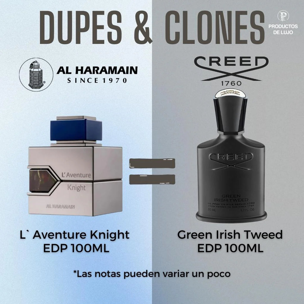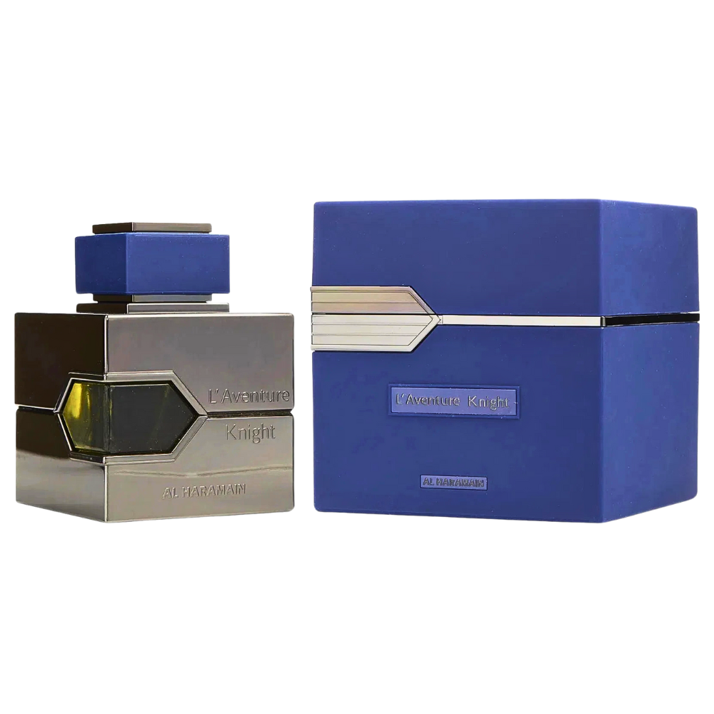L'Aventure Knight de Al Haramain Perfumes es una fragancia de la familia olfativa Ámbar Fougere para hombres. L'Aventure Knight se lanzó en 2018. Las Notas de Salida son hierba luisa, bergamota y té; las Notas de Corazón son Hoja de Violeta e Iris; las notas de fondo son notas empolvadas, ámbar gris, sándalo y almizcle.