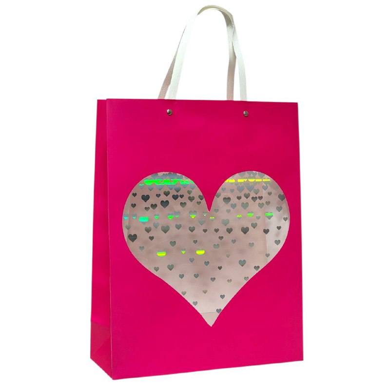 BOLSA DE REGALO GRANDE CORAZÓN TRANSPARENTEMEDIDA 30X12X41CM