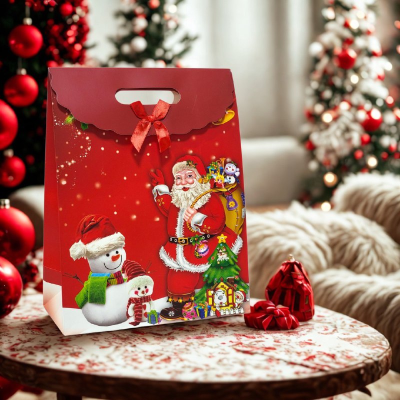 BOLSA DE REGALO NAVIDEÑA GRANDE DE 32X24CM, PERFECTA PARA ENVOLVER TUS REGALOS DE MANERA ELEGANTE Y FESTIVA. SU DISEÑO AMPLIO ASEGURA QUE PUEDAS COLOCAR OBJETOS DE GRAN TAMAÑO CON FACILIDAD, MIENTRAS QUE SU MOTIVO NAVIDEÑO AÑADE UN TOQUE ALEGRE Y ESPECIAL A CADA OBSEQUIO. HAZ QUE TUS REGALOS DESTACAN ESTA TEMPORADA CON ESTA PRÁCTICA Y HERMOSA BOLSA.