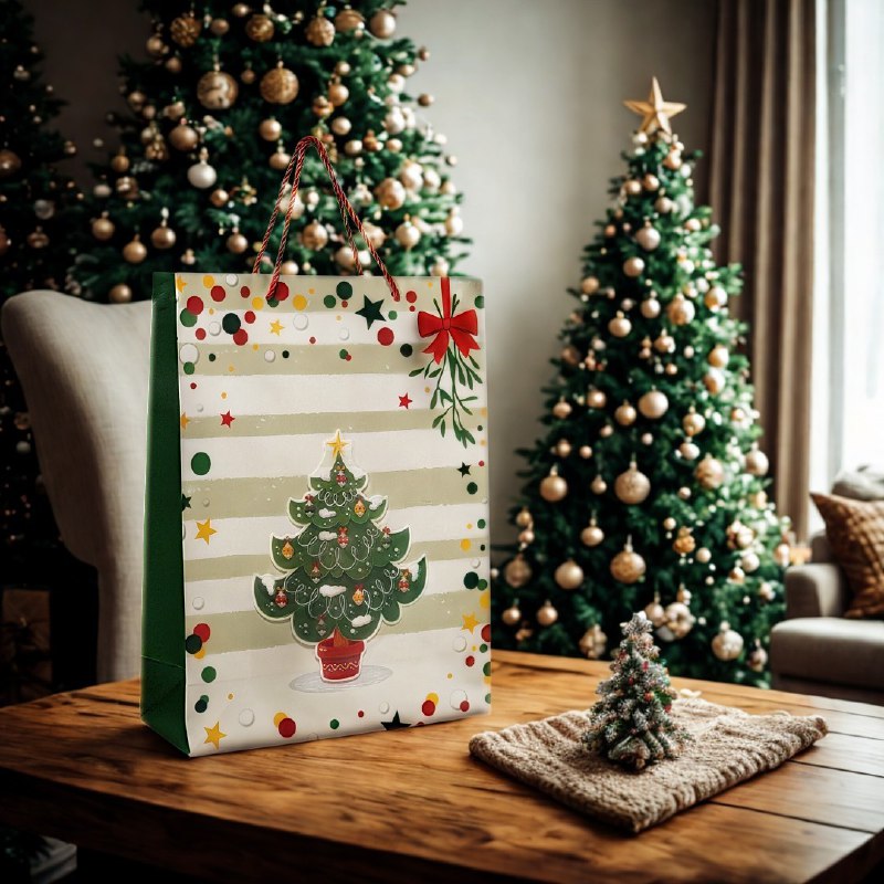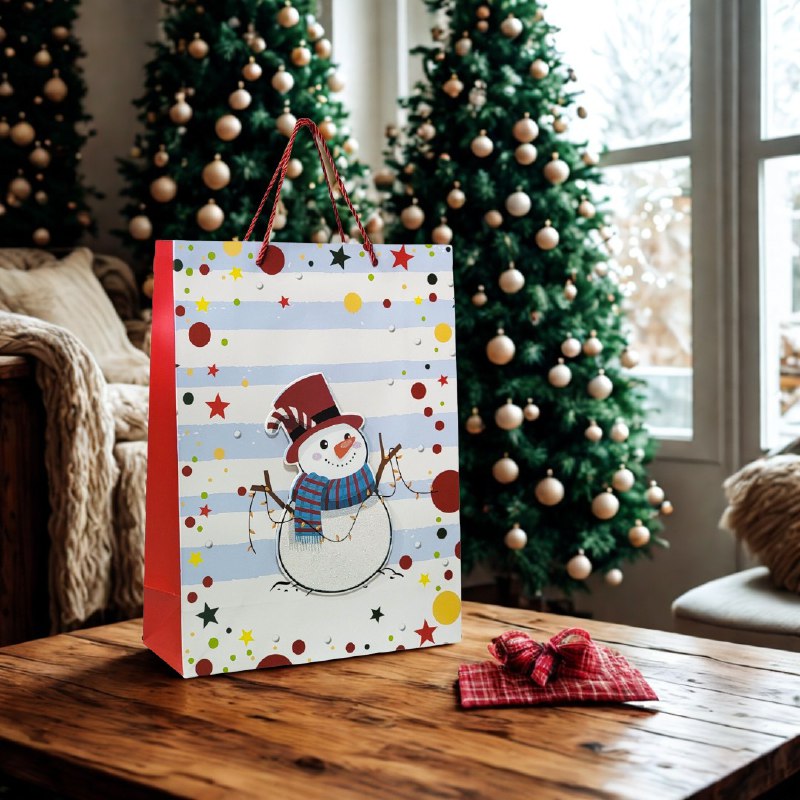 BOLSA DE REGALO NAVIDEÑA GRANDE DE 30X40X12CM, IDEAL PARA EMPAQUETAR TUS REGALOS CON ESTILO Y AMPLITUD. SU DISEÑO ESPACIOSO PERMITE TRANSPORTAR ARTÍCULOS DE DIFERENTES TAMAÑOS, FACILITANDO TUS ENTREGA PARA ESTAS FESTIVIDADES. PERFECTA PARA HACER QUE CADA OBSEQUIO DESTACE Y SE ENTRENGUE CON UN TOQUE NAVIDEÑO IRRESISTIBLE.