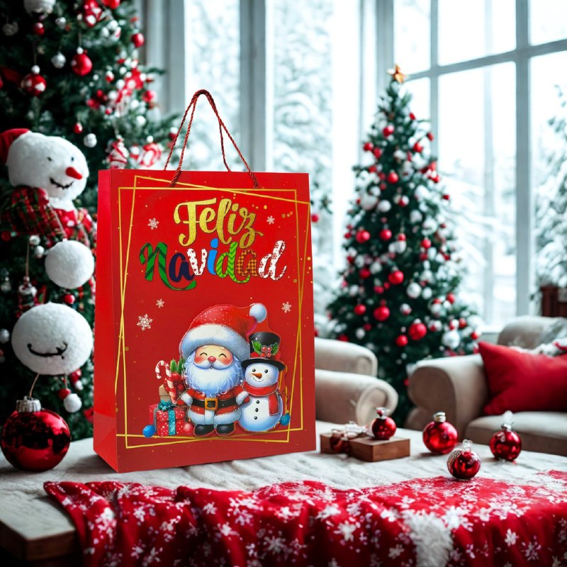 BOLSA DE REGALO NAVIDEÑA GRANDE DE 30X40X12CM, PERFECTA PARA ENVOLVER TUS REGALOS CON ESTILO Y COMODIDAD. SU AMPLIO TAMAÑO TE PERMITE COLOCAR PRODUCTOS VARIADOS, FACILITANDO LA PRESENTACIÓN DE TUS OBSEQUIOS EN ESTA TEMPORADA NAVIDEÑA. DISEÑADA PARA SUMAR ELEGANCIA Y PRÁCTICIDAD A TUS DETALLES. ¡HAZ QUE TUS REGALOS DESTACAN CON ESTA BOLSA!