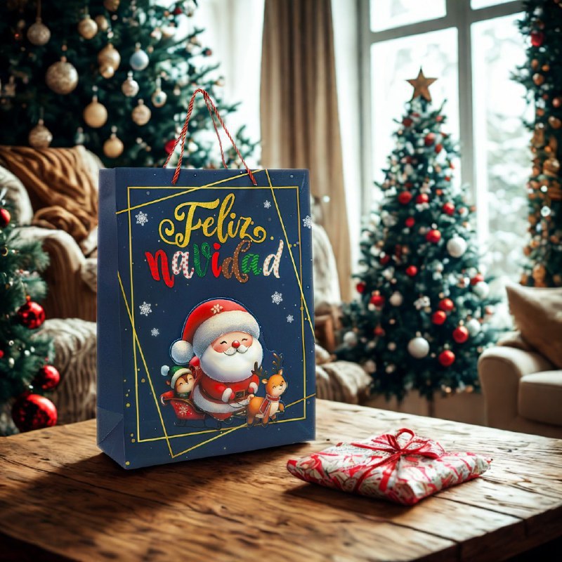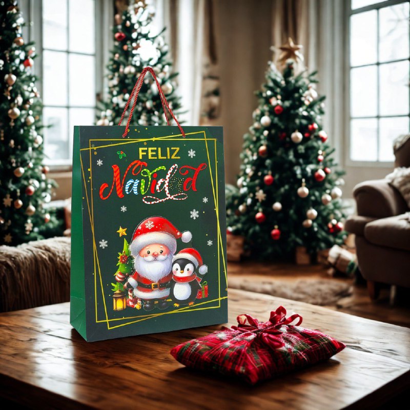 BOLSA DE REGALO NAVIDEÑA MEDIANA DE 26X32X10CM, PERFECTA PARA ENVOLVER TUS REGALOS CON ESTILO Y PRÁCTICIDAD ESTA TEMPORADA. SU TAMAÑO IDEAL PERMITE ACOMODAR ARTÍCULOS VARIADOS, ASEGURANDO UNA PRESENTACIÓN ATRACTIVA Y FÁCIL DE TRANSPORTAR. HAZ QUE TUS OBSEQUIOS DESTACARAN CON ESTA BOLSA RESISTENTE Y DECORATIVA.