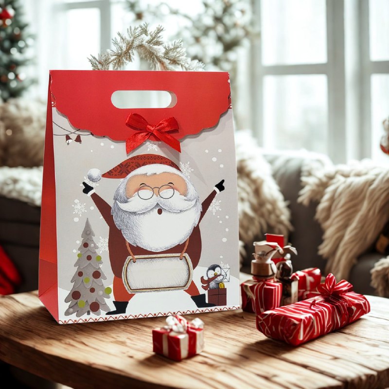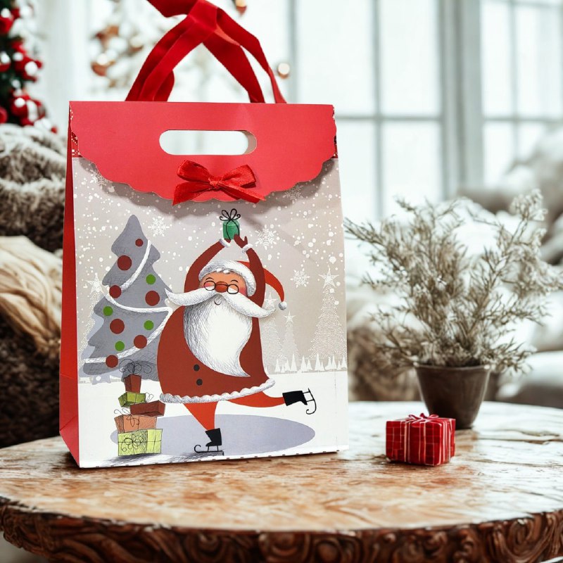BOLSA DE REGALO NAVIDEÑA MEDIANA DE 31X24CM, PERFECTA PARA ENVOLVER TUS OBSEQUIOS CON ESTILO Y ESPÍRITU FESTIVO. SU TAMAÑO IDEAL TE PERMITE PRESENTAR REGALOS DE FORMA PRÁCTICA Y ELEGANTE, AGREGANDO UN TOQUE NAVIDEÑO A CADA DETALLE. HAZ QUE TUS REGALOS DESTACEN ESTA TEMPORADA CON ESTA BOLSA DE REGALO FUNCIONAL Y ATRACTIVA.