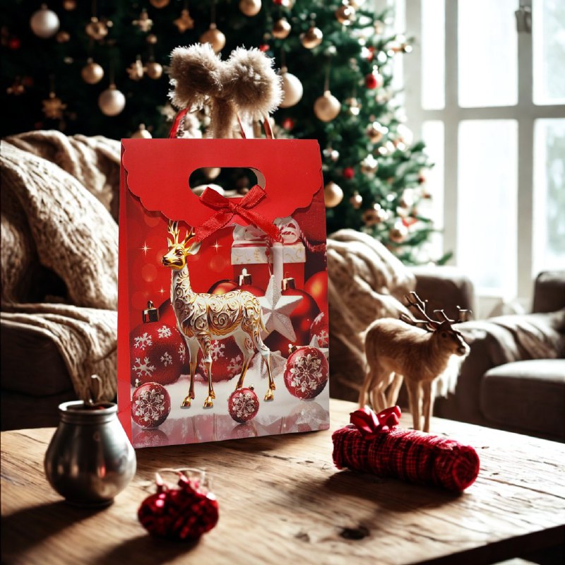 BOLSA DE REGALO NAVIDEÑA MINI MEDIANA DE 14X21CM, PERFECTA PARA EMPAQUETAR TUS REGALOS CON ESTILO Y PRÁCTICIDAD. SU TAMAÑO IDEAL FACILITA EL TRANSPORTE Y ENTREGA, MIENTRAS QUE EL DISEÑO NAVIDEÑO AGREGA UN TOQUE FESTIVO QUE ENCANTARÁ A QUIEN LA RECIBA. HAZ QUE TUS PRESENTES DESTACAN ESTA TEMPORADA CON ESTA BOLSA FUNCIONAL Y ATRACTIVA.