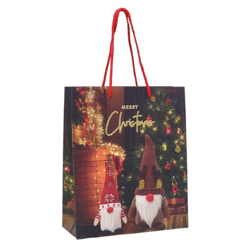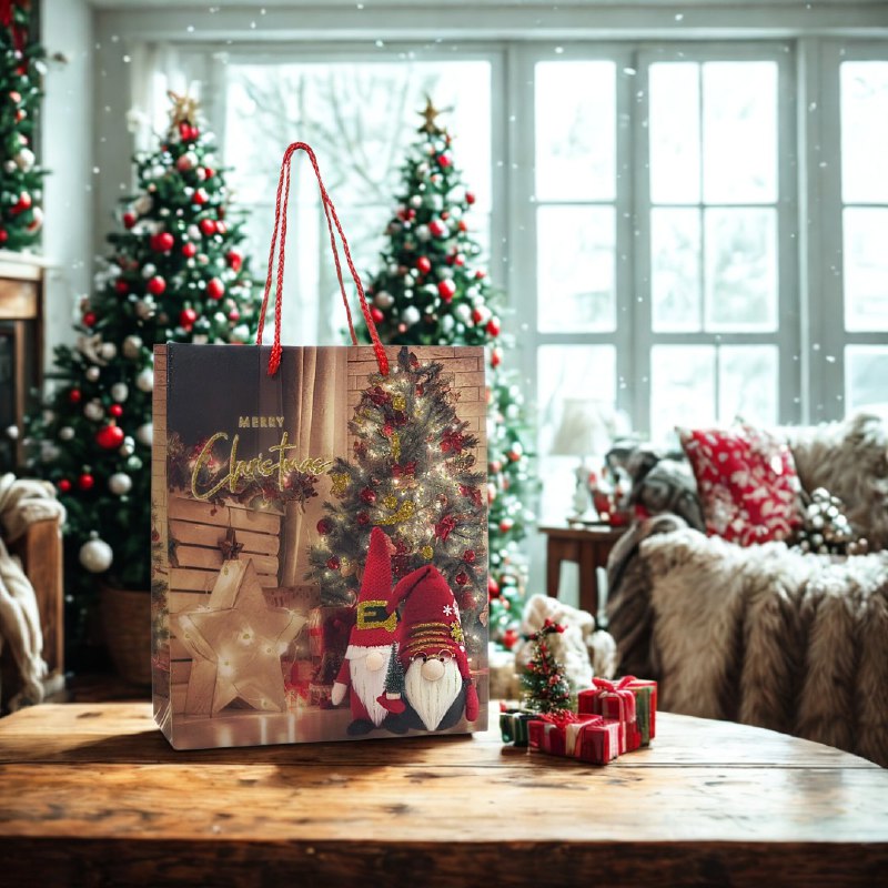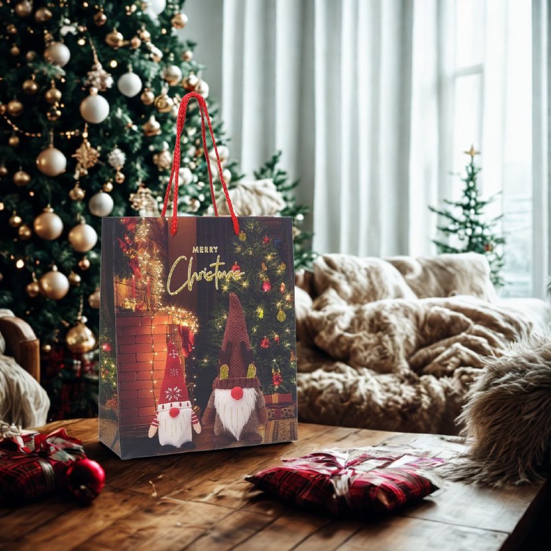 BOLSA DE REGALO NAVIDEÑA PEQUEÑA DE 19.5X23.5X8 CM, IDEAL PARA EMPAQUETAR DETALLES CON ESTILO DURANTE LA TEMPORADA NAVIDEÑA. SU TAMAÑO PRÁCTICO PERMITE TRANSPORTAR PEQUEÑOS REGALOS DE MANERA FÁCIL Y ELEGANTE, ADEMÁS DE APORTAR UN TOQUE FESTIVO A CADA PRESENTE. PERFECTA PARA SORPRENDER A TUS SERES QUERIDOS CON UN EMPAQUE DE CALIDAD Y DISEÑO NAVIDEÑO.