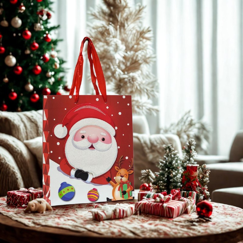 BOLSA DE REGALO NAVIDEÑA PEQUEÑA DE 19.5X23.5X10CM, DISEÑADA PARA HACER TUS REGALOS MÁS ESPECIALES ESTA TEMPORADA. SU TAMAÑO IDEAL PERMITE EMPAQUETAR PEQUEÑOS DETALLES CON UN TOQUE FESTIVO, FACILITANDO LA PRESENTACIÓN Y TRANSPORTE DE TUS OBSEQUIOS. ¡HAGAMOS QUE ESTA NAVIDAD SEA INOLVIDABLE CON ESTA PRÁCTICA Y ELEGANTE BOLSA!