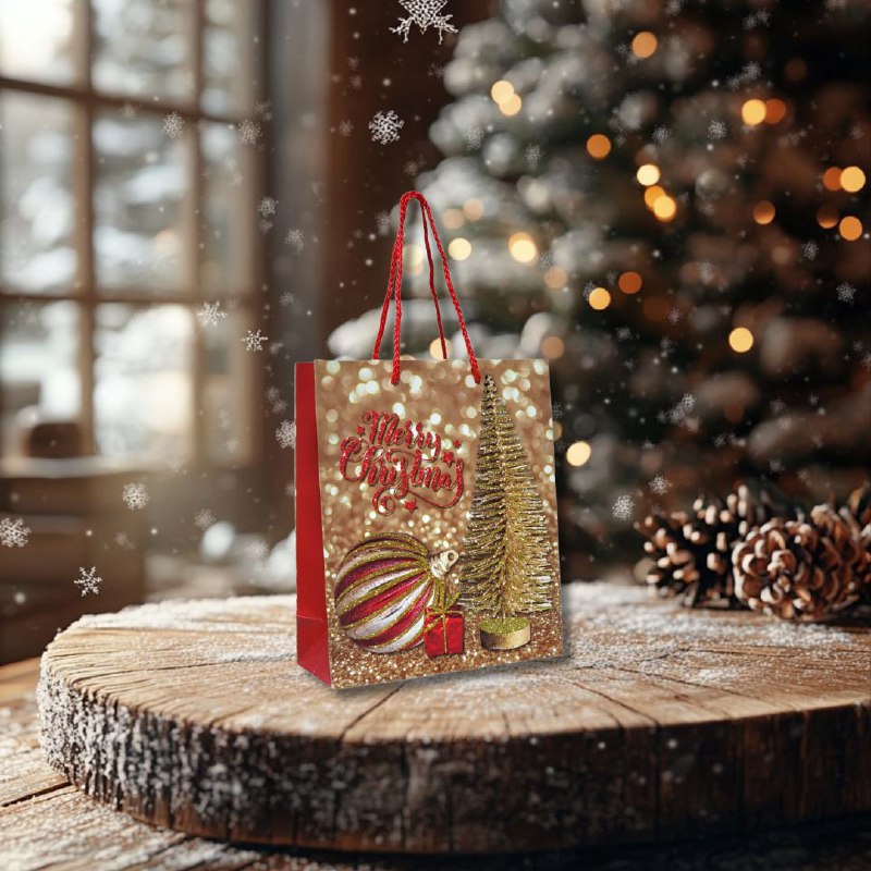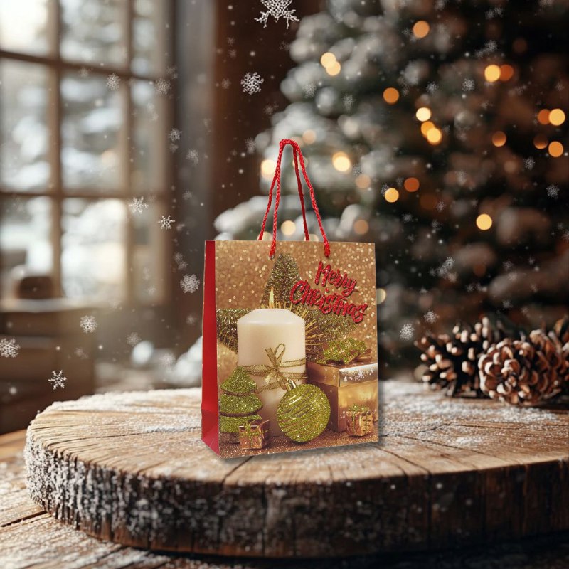 BOLSA DE REGALO NAVIDEÑA PEQUEÑOMEDIDA 19.5X23.5X8CM
