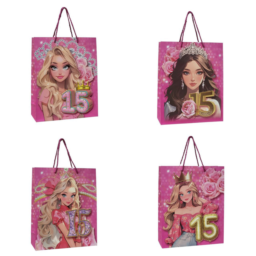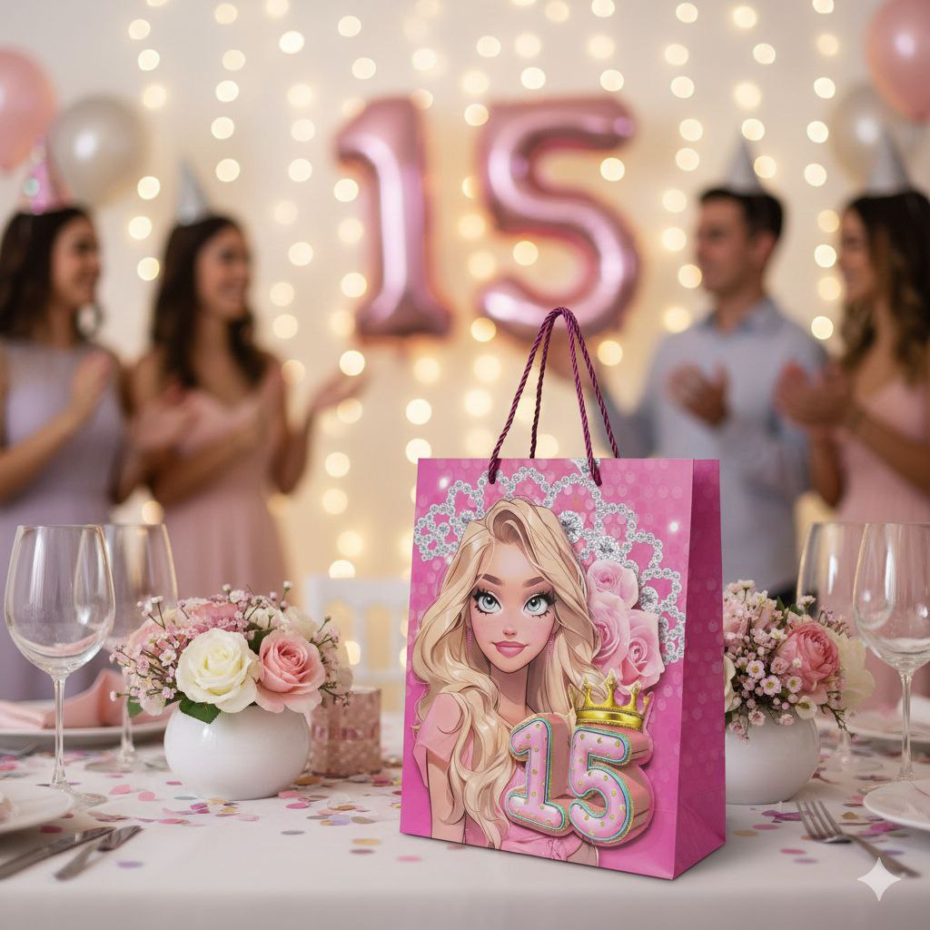 BOLSA DE REGALO PARA 15 AÑOS MEDIANA 32X26X10CM