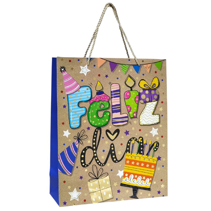 BOLSA DE REGALO MEDIANA FELIZ DIAMEDIDA 26X32X10CM