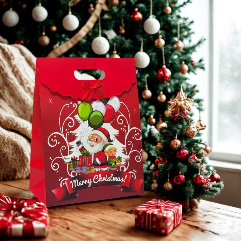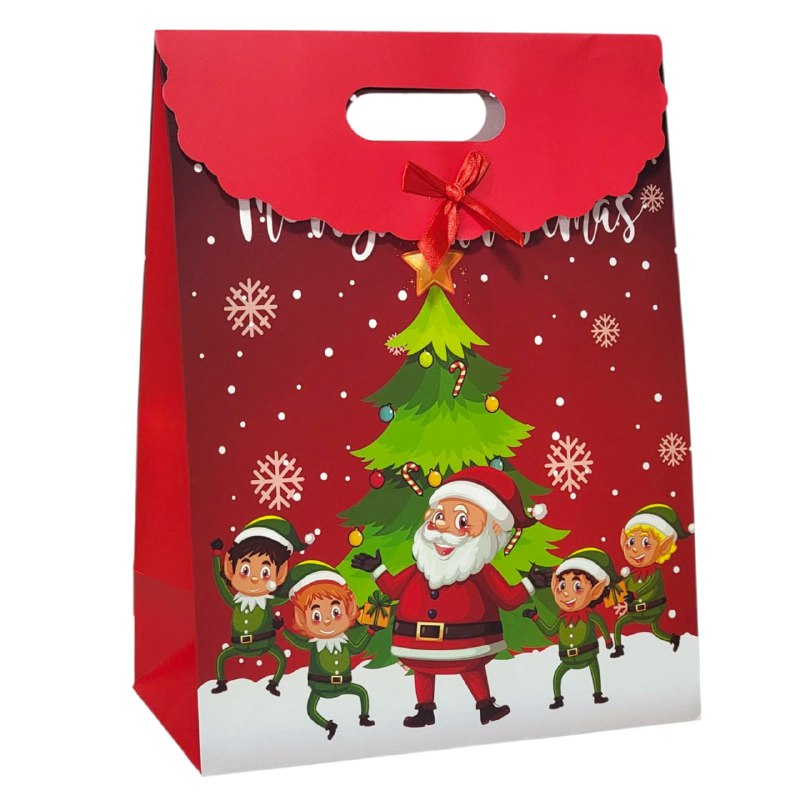 BOLSA DE REGALO NAVIDEÑA EXTRA GRANDE, CON DIMENSIONES DE 37X28CM, PERFECTA PARA EMPAQUETAR REGALOS DE TAMAÑO GENEROSO Y DARLES UN TOQUE FESTIVO E IMPACTANTE.