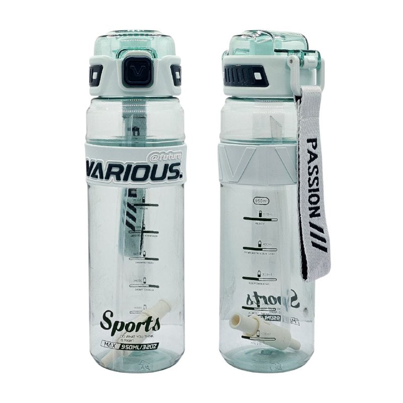 VARIOUS SPORTS, TERMO MODELO DEPORTIVO ERGONÓMICO CON CUERPO TRANSPARENTE, FABRICADA EN PLÁSTICO RESISTENTE LIBRE DE BPA, CUENTA CON TAPA DE APERTURA FÁCIL Y MECANISMO TIPO PAJILLA INTEGRADA, DISEÑO LIGERO DE FÁCIL AGARRE PARA MAYOR COMODIDAD, IDEAL PARA ACTIVIDADES DE FITNESS, CAMPING, DEPORTES AL AIRE LIBRE O USO DIARIO, DISPONIBLE EN 2 COLORES, CONT. 950ML