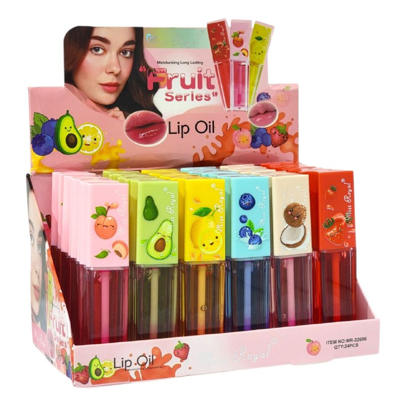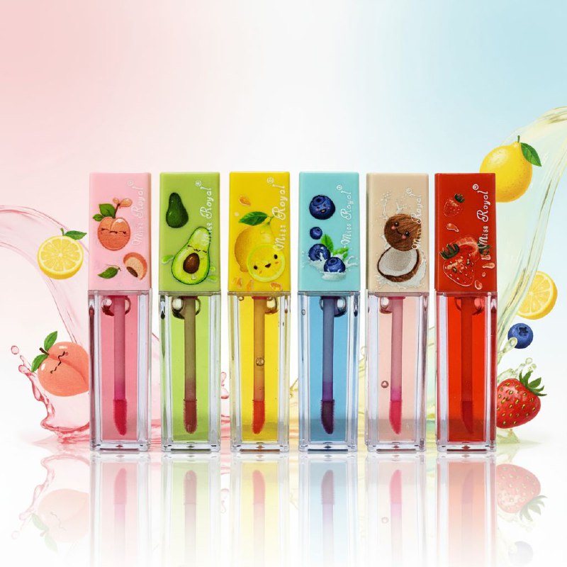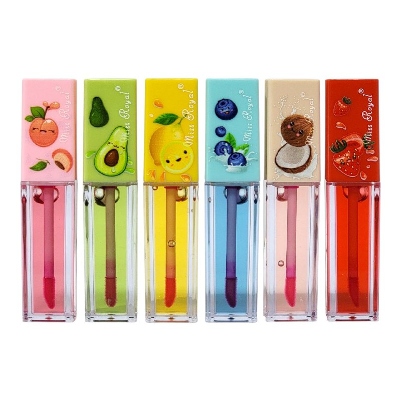MAQUILLAJE ECONÓMICO MISS ROYAL MOISTURIZING LONG LASTING FRUIT SERIES LIP OIL ACEITE LABIAL HIDRATACIÓN DE LARGA DURACIÓN CONT. 7.5G