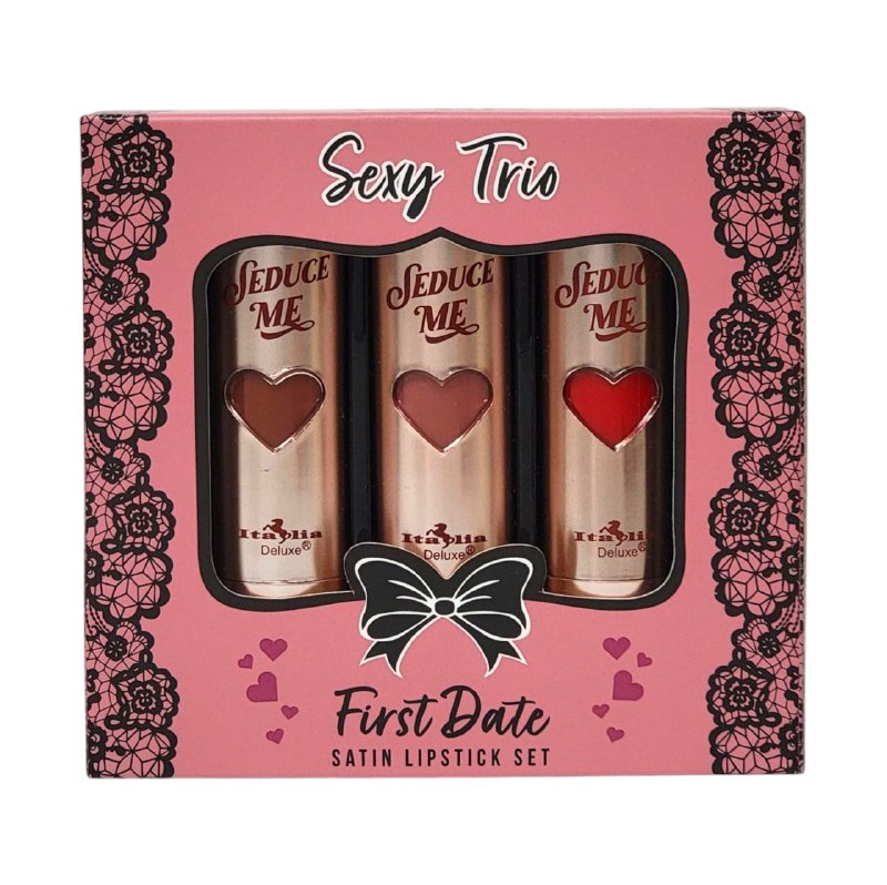 MAQUILLAJE ECONÓMICO ITALIA DELUXE SEXY TRIO LINGERIE SET DE LÁPICES LABIAL SATINADO FIRST DATE CONT. 3X13 OZ