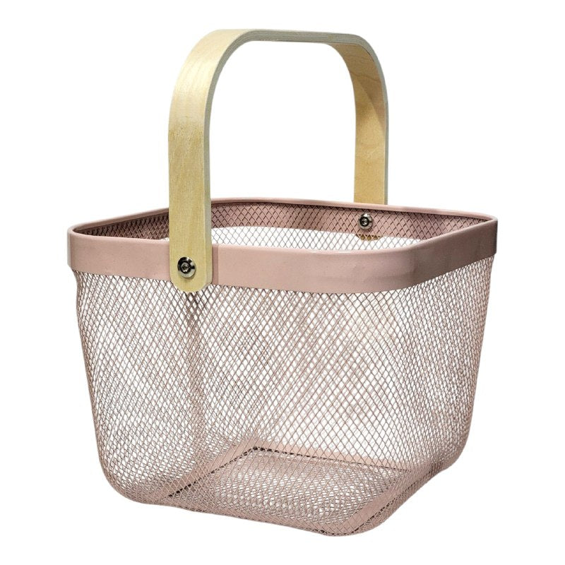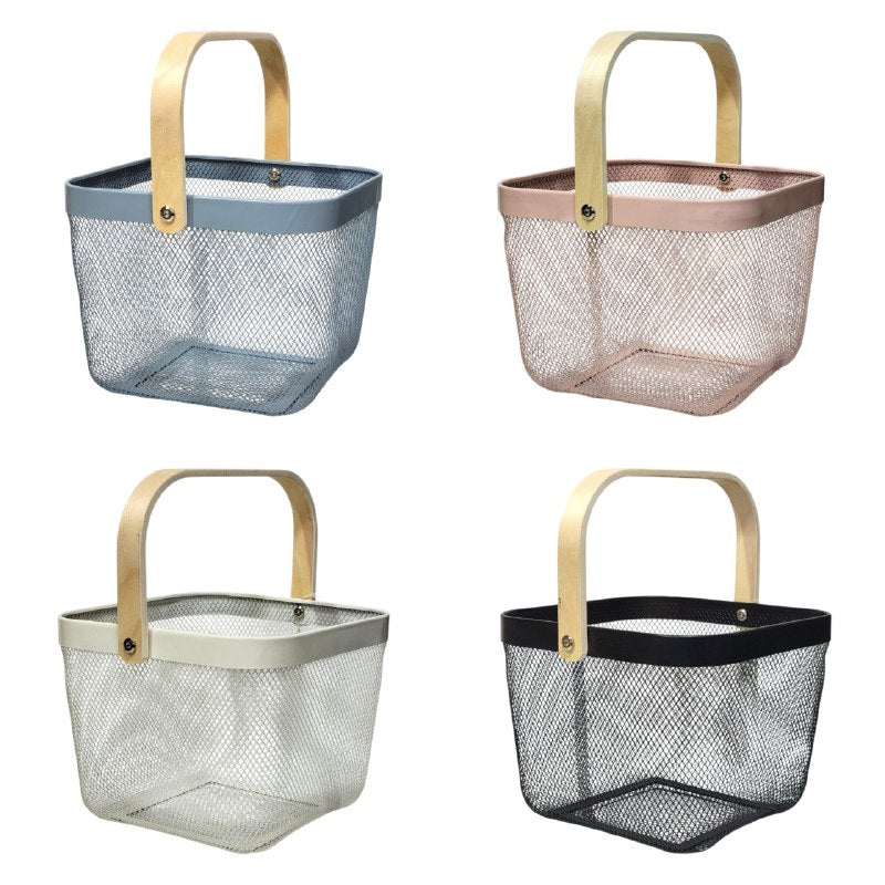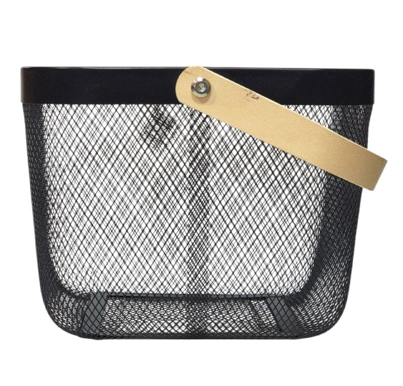 CANASTA DE ALMACENAMIENTO MULTIUSOS CON ASA DE MADERA NATURAL, DISEÑADA PARA ORGANIZAR Y DECORAR CUALQUIER ESPACIO DEL HOGAR. FABRICADA CON MALLA DE METAL RESISTENTE Y DISPONIBLE EN 4 TONOS ELEGANTES, OFRECE DURABILIDAD Y ESTILO. SU ROBUSTA ASA DE MADERA FACILITA SU TRANSPORTE Y APORTA UN TOQUE CALIDO Y SOFISTICADO. PERFECTA PARA USO EN CASA, BAÑO, OFICINA O COMO ELEMENTO DECORATIVO. MANTIENE TODO EN ORDEN CON ELEGANCIA Y FUNCIONALIDAD.