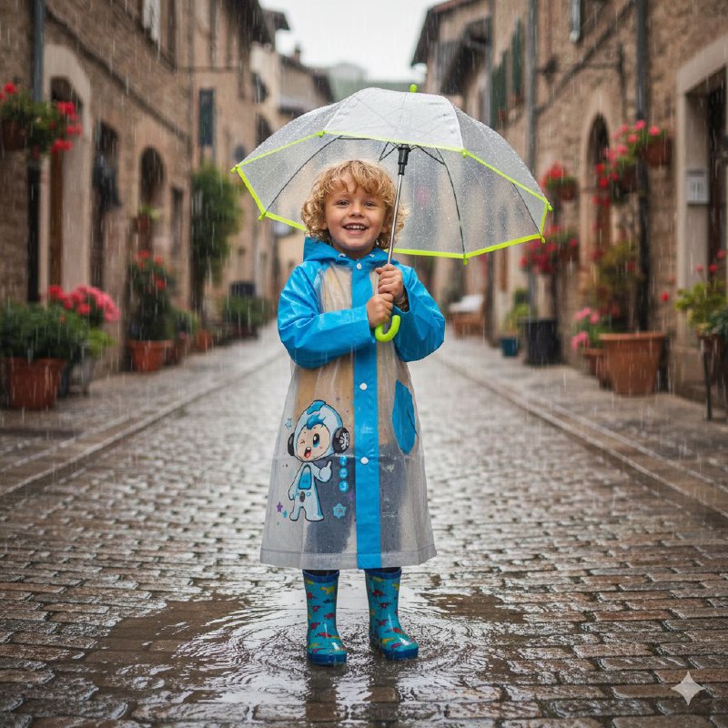 HUAYI, CAPA DE LLUVIA INFANTIL, MATERIAL 100% PVC, IMPERMEABLE CON CAPUCHA Y BOTONES DE PRESIÓN, DISPONIBLE EN DISEÑOS ROSA Y AZUL CON DIBUJOS ANIMADOS, TALLAS 8, 10, 12, DISPONIBLE EN 4 COLORES