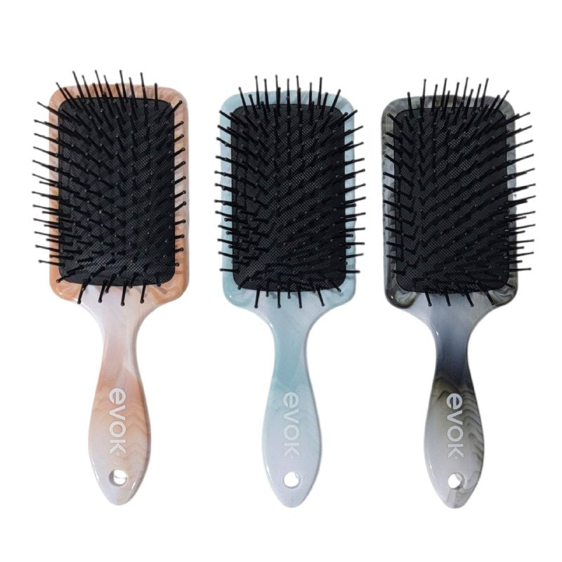 EVOK STYLING, CEPILLOS PARA CABELLO, DESENREDA SUAVEMENTE, HECHO CON CERDAS FLEXIBLES, CON DISEÑOS MARMOLEADOS, DISPONIBLE EN 3 COLORES DIFERENTES