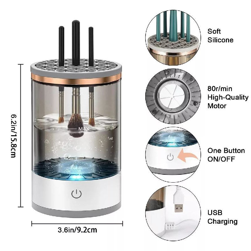 LIMPIADOR DE BROCHAS DE MAQUILLAJE ELECTRICO 3 EN 1 SOPORTE GIRATORIO AUTOMÁTICO,HERRAMIENTA DE SECADO RÁPIDO