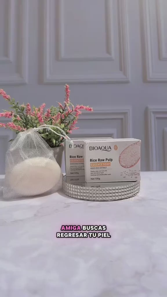 BIOAQUA JABÓN DE ESENCIA DE PULPA CRUDA DE ARROZ,PIEL PROFUNDAMENTE LIMPIA, CUIDADA,FRESCA Y SUAVE DESPUES DEL LAVADO CONT. 100G