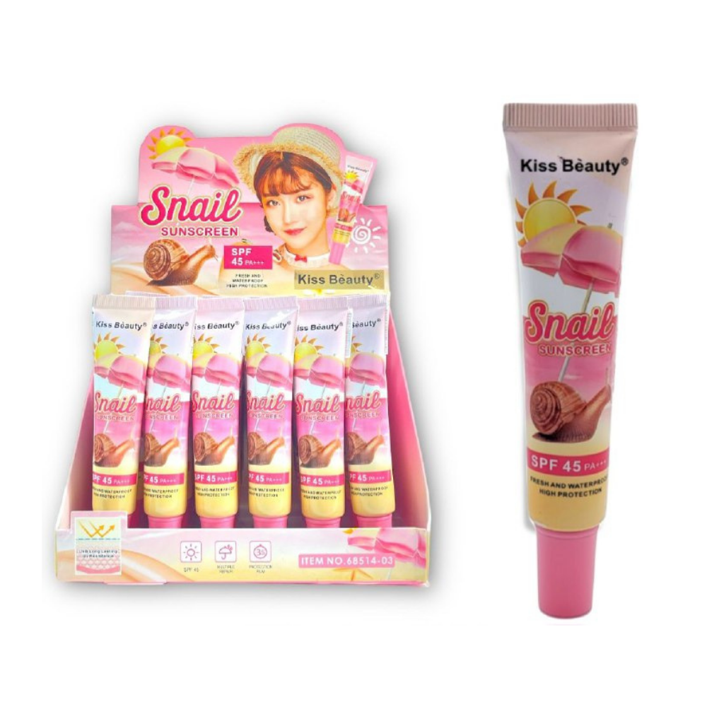 MAQUILLAJE ECONÓMICO KISS BEAUTY CARACOL PROTECTOR SOLAR RESISTENTE AL AGUA 45SPF