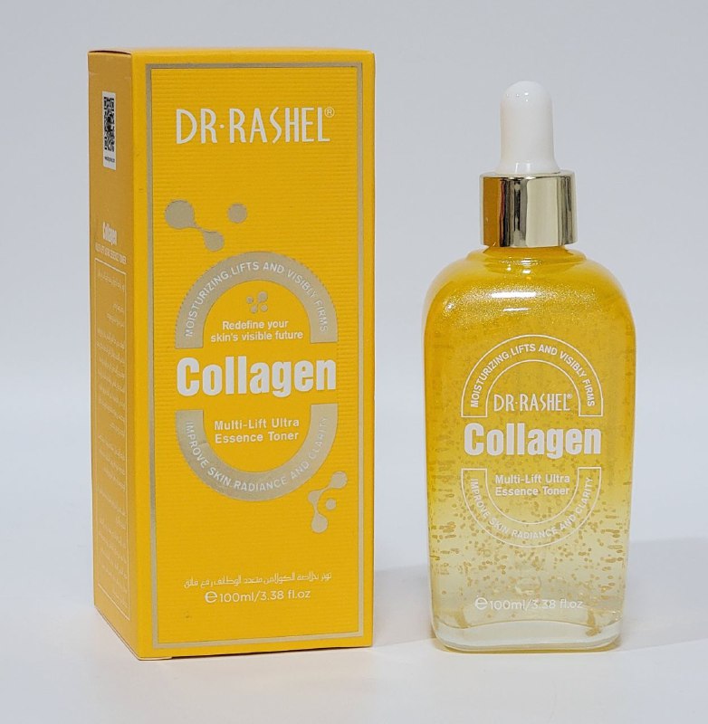 DR. RASHEL COLLAGENO TONICO ULTRA ESENCIA MULTI-LIFT DE COLÁGENO ESTA ESENCIA POTENCIADA POR COLÁGENO,EL TÓNICO ACTÚA PARA LEVANTAR,REAFIRMAR,MEJORAR LAS ARRUGAS Y REDUCIR VISIBLEMENTE LAS MANCHAS OSCURAS,LA TEXTURA DE RÁPIDA ABSORCIÓN NO CONTIENE ACEITE Y NO OBSTRUYE LOS POROS LA TEXTURA SE FUNDE PERFECTAMENTE CON LA PIEL,SIN DEJAR RESIDUOS BLANCOS INDEPENDIENTEMENTE DEL TONO DE PIEL,REVELANDO UNA PIEL RADIANTE,CÓMODA E HIDRATADA DURANTE TODO EL DÍA CON O SIN MAQUILLAJE CONT. 100ML