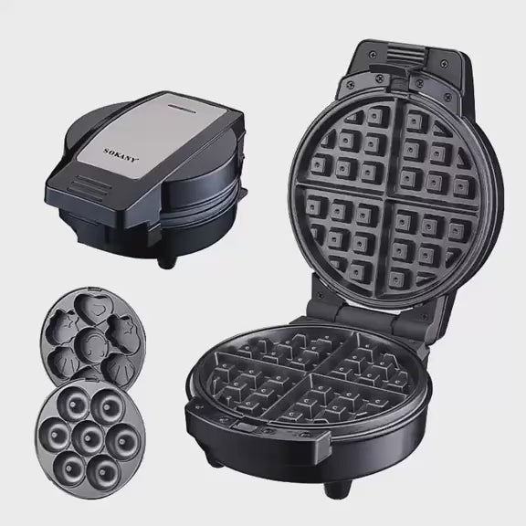 SOKANY MAQUINA FABRICANTE DE SNACKS DESMONTABLE 3 EN 1 SK-08006 PARA HACER WAFFLES,MINI DONAS Y CUPCAKES EN FORMA SK-08006 600W FACIL DE LIMPIAR,ALTO VOLTAJE,CALEFACCIÓN DE DOBLE CARA