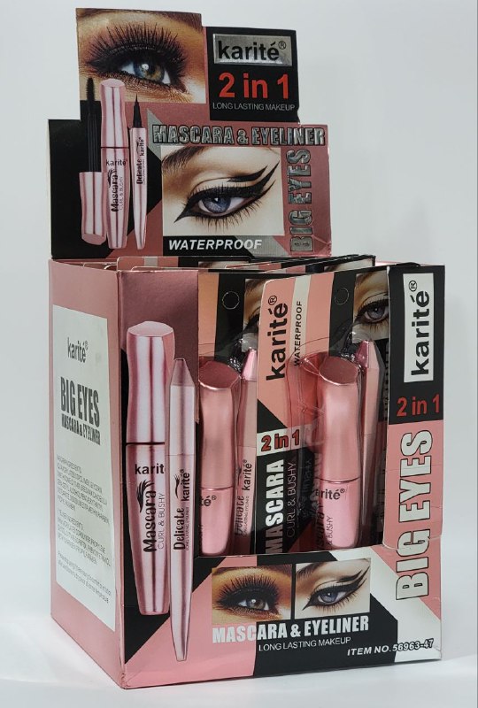 MAQUILLAJE ECONÓMICO KARITÉ 2 EN 1 MASCARA PARA PESTAÑAS CONT. 15ML Y DELINEADOR DE OJOS CONT. 1ML MAQUILLAJE DE LARGA DURACIÓN IMPERMEABLE
