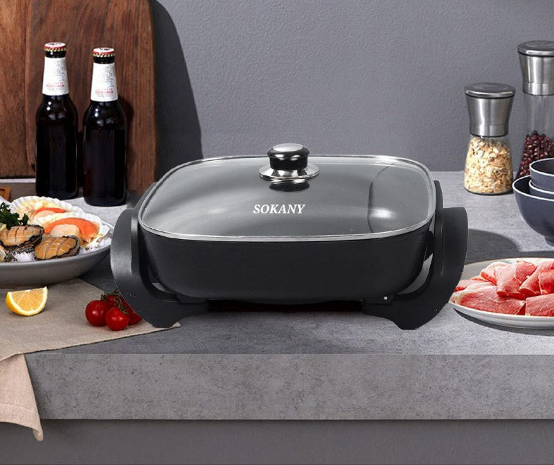 SOKANY SK-2005 SARTEN ELECTRICO,ALTA CALIDAD,ANTIHERENTE,1500W DE FUERZA,FÁCIL DE LIMPIAR