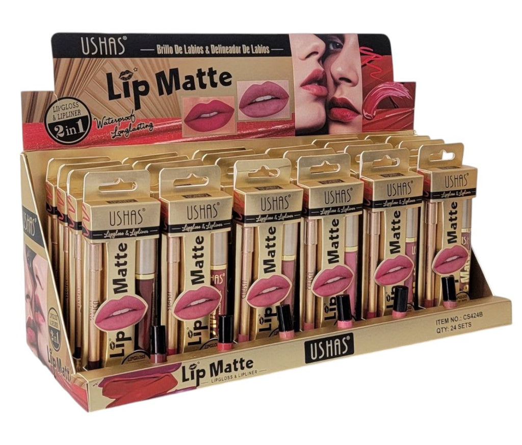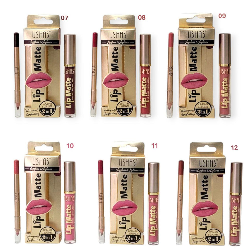 MAQUILLAJE ECONÓMICO USHAS BRILLO DE LABIOS Y LAPIZ DELINEADOR DE LABIOS 6 TONOS DISPONIBLES BRILLO DE LABIOS CONT. 4.5G LÁPIZ DELINEADOR DE LABIOS CONT. 1.2G