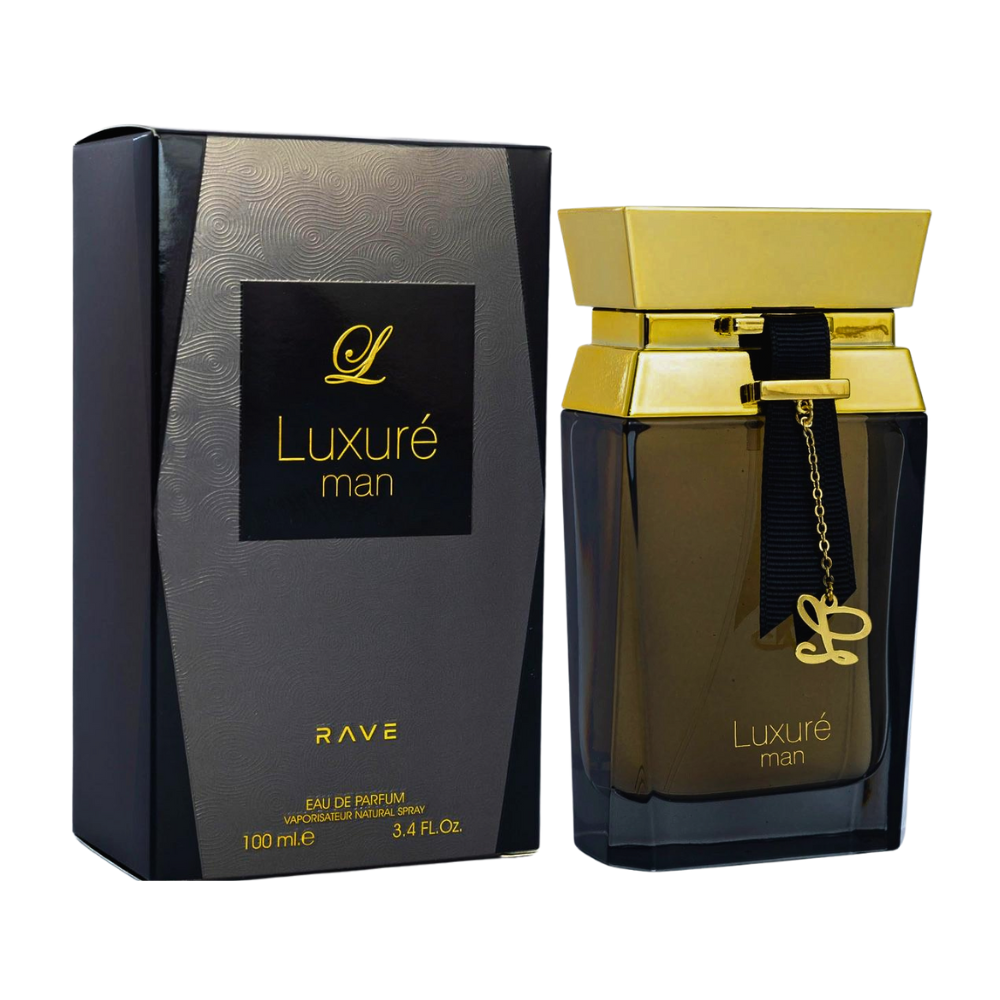 Luxuré Man de RAVE es una fragancia de la familia olfativa Amaderada Aromática para Hombres. Luxuré Man se lanzó en 2021. Las Notas de Salida son pimienta negra, manzana verde, bergamota y limón (lima ácida); las Notas de Corazón son jazmín y nuez moscada; las Notas de Fondo son pachulí, sándalo, vetiver y cedro.