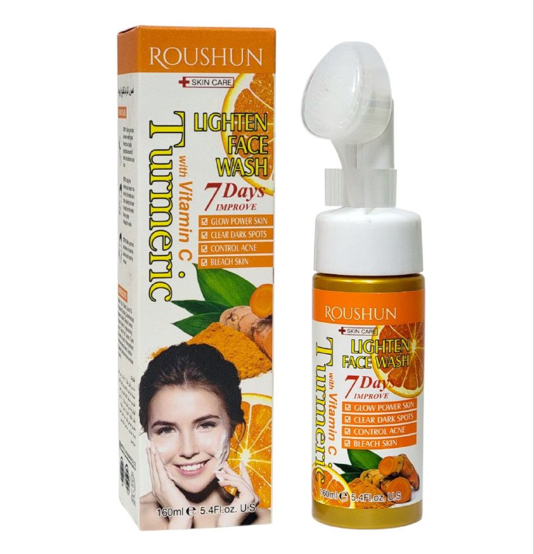 ROUSHUN LIGHTEN FACE WASH LIMPIADOR FACIAL ACLARADOR CON VITAMINA C Y CÚRCUMA PIEL CON PODER LUMINOSO,ELIMINAR MANCHAS OSCURAS,CONTROLAR EL ACNÉ,DECOLORAR LA PIEL APTO PARA TODO TIPO DE PIEL,LA FORMULA SUAVE DE ESTE LIMPIADOR FACIAL DE CÚRCUMA ES ADECUADA PARA TODO TIPO DE PIEL,LO QUE LO CONVIERTE EN UNA GRAN ADICIÓN A CUALQUIER RUTINA DE CUIDADO DE LA PIEL,EL LIMPIADOR FACIAL DE CÚRCUMA ES UN LIMPIADOR HIDRATANTE QUE AYUDA A DEJAR LA PIEL SUAVE,TERSA Y BIEN HIDRATADA CONT. 160ML