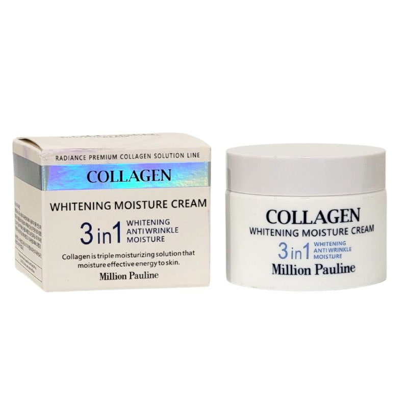 MILLION PAULINE COLLAGEN CREMA HIDRATANTE BLANQUEADORA 3 EN 1 HIDRATANTE ANTIARRUGAS BLANQUEADORA EL COLÁGENO ES UNA SOLUCIÓN TRIPLEMENTE HIDRATANTE Y APORTA ENERGÍA EFECTIVA A LA PIEL CONT. 50G