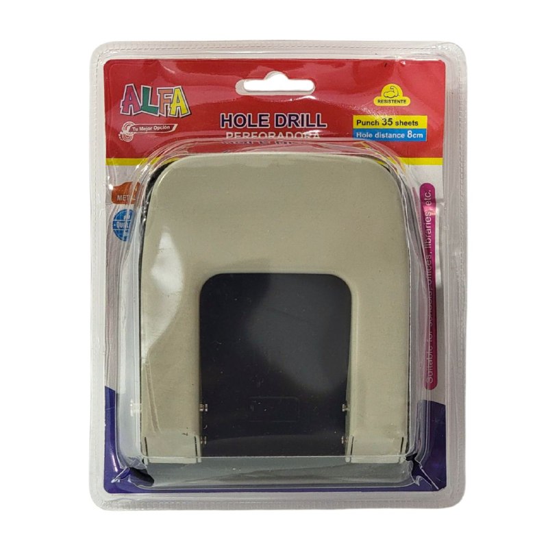 ALFA HOLE DRILL PERFORADORA 8CM DE DISTANCIA ENTRE AGUJEROS,PERFORA 35 HOJAS ADECUADO PARA ESCUELAS,OFICINAS,BIBLIOTECAS,ETC 3 COLORES DISPONIBLES