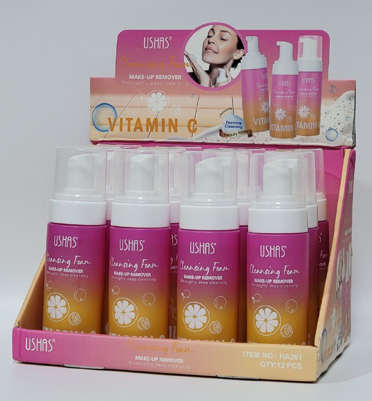 MAQUILLAJE ECONÓMICO USHAS ESPUMA LIMPIADORA DESMAQUILLANTE VITAMINA C LIMPIEZA PROFUNDA CONT. 155G