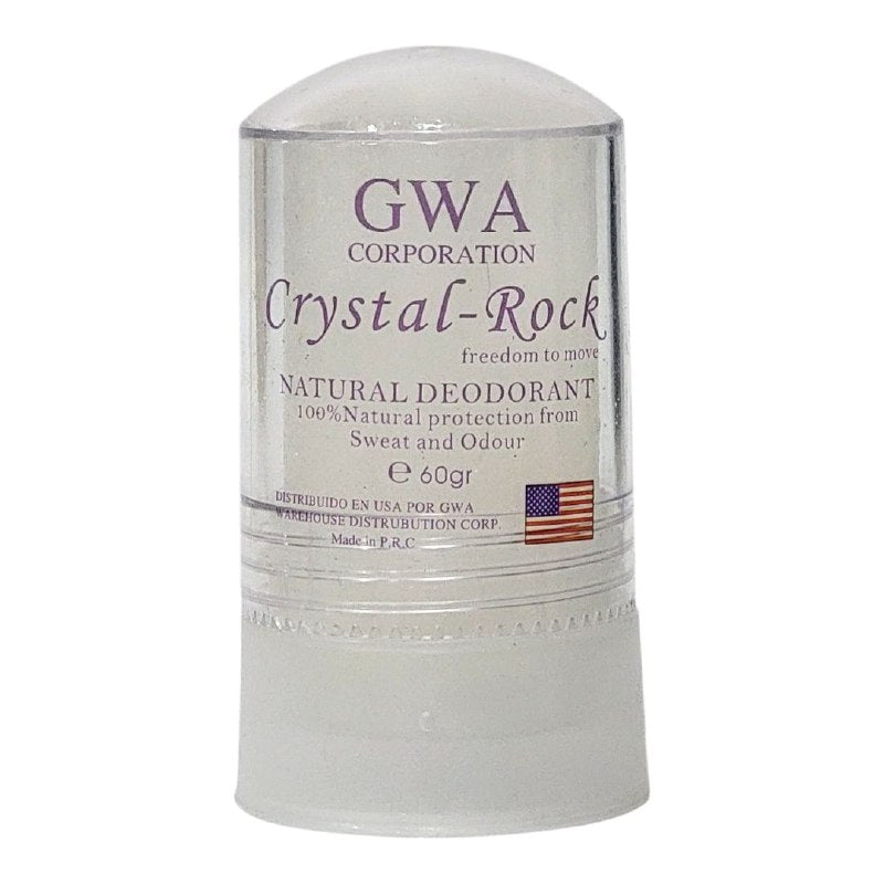 GWA CORPORATION CRYSTAL ROCK DESODORANTE DE PIEDRA DE ALUMBRE DE LARGA DURACION MANTIENE EL PH DE LA PIEL,PREVIENE LOS MALOS OLORES Y SUDORACIÓN,MUY RECOMENDADO PARA PIEL SENSIBLE Y LO MEJOR DE TODO QUE NO MANCHA LA ROPA NI LA PIEL CONT.60GR