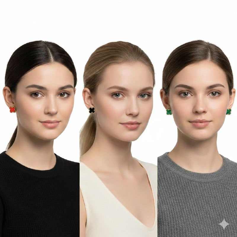 SET DE ARITOS DE ENCHAPE FLOR CARTIER PARA DAMA 3 COLORES