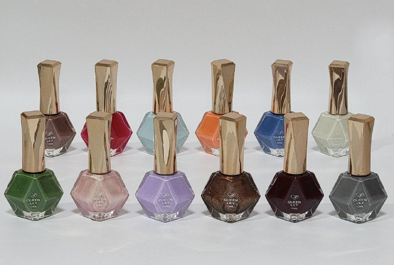 MAQUILLAJE ECONÓMICO QUEENLILY ESMALTE DE UÑAS LARGA DURACIÓN DE 7 DIAS EL ARTE DE UÑAS ES UNA FORMA Y EL ESMALTE DE UÑAS ES TU PINTURA 12 COLORES DISPONIBLES CONT. 15ML