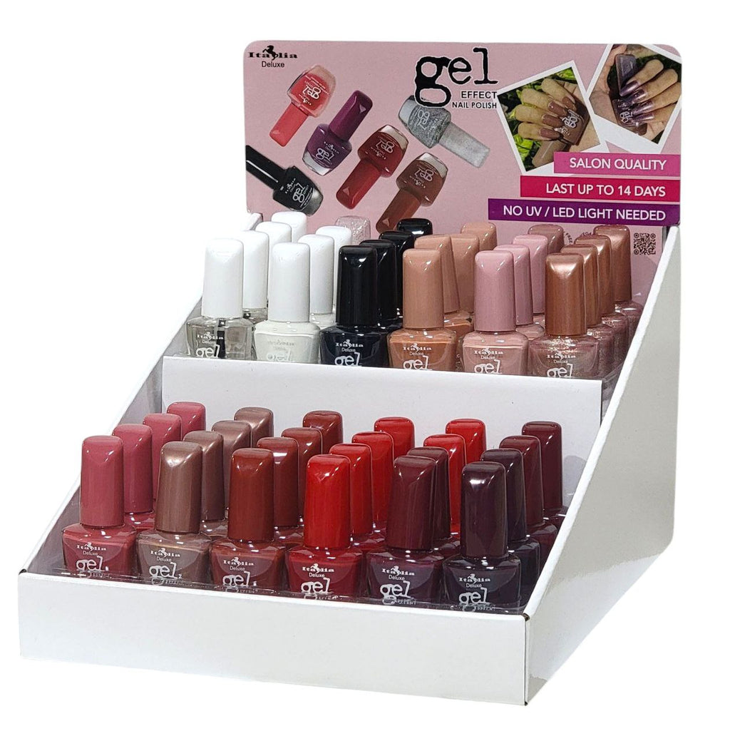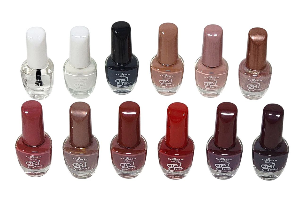 MAQUILLAJE ECONÓMICO ITALIA DELUXE ESMALTE DE UÑAS EFECTO GEL CALIDAD DEL SALÓN,DURAN HASTA 14 DÍAS,NO NECESITA LUZ UV/LED CONT. 12ML