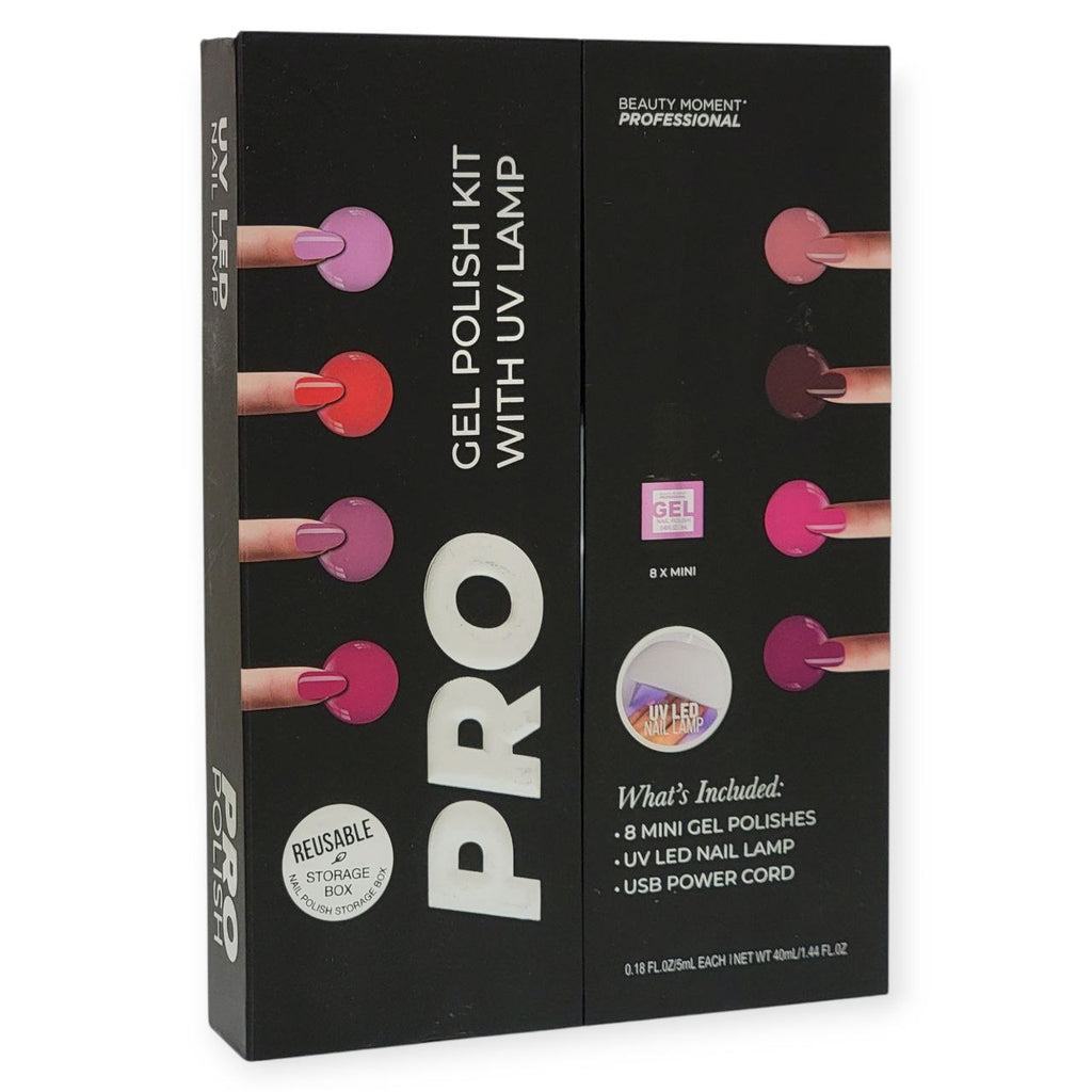 BEAUTY MOMENT PROFESSIONAL PRO KIT DE MINI ESMALTE EN GEL INCLUYE 8 MINI ESMALTES DE UÑAS EN GEL CONT. 5ML,LÁMPARA DE UÑAS LED UV Y CABLE DE ALIMENTACIÓN USB